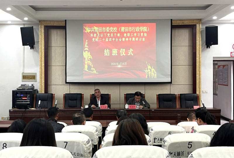 1月14日至16日,莆田市委党校(莆田市行政学院)举办学习贯彻党的二十届四中全会精神专题研讨班。校(院)科级及以下全体党员干部、教职工参加学习和研讨。